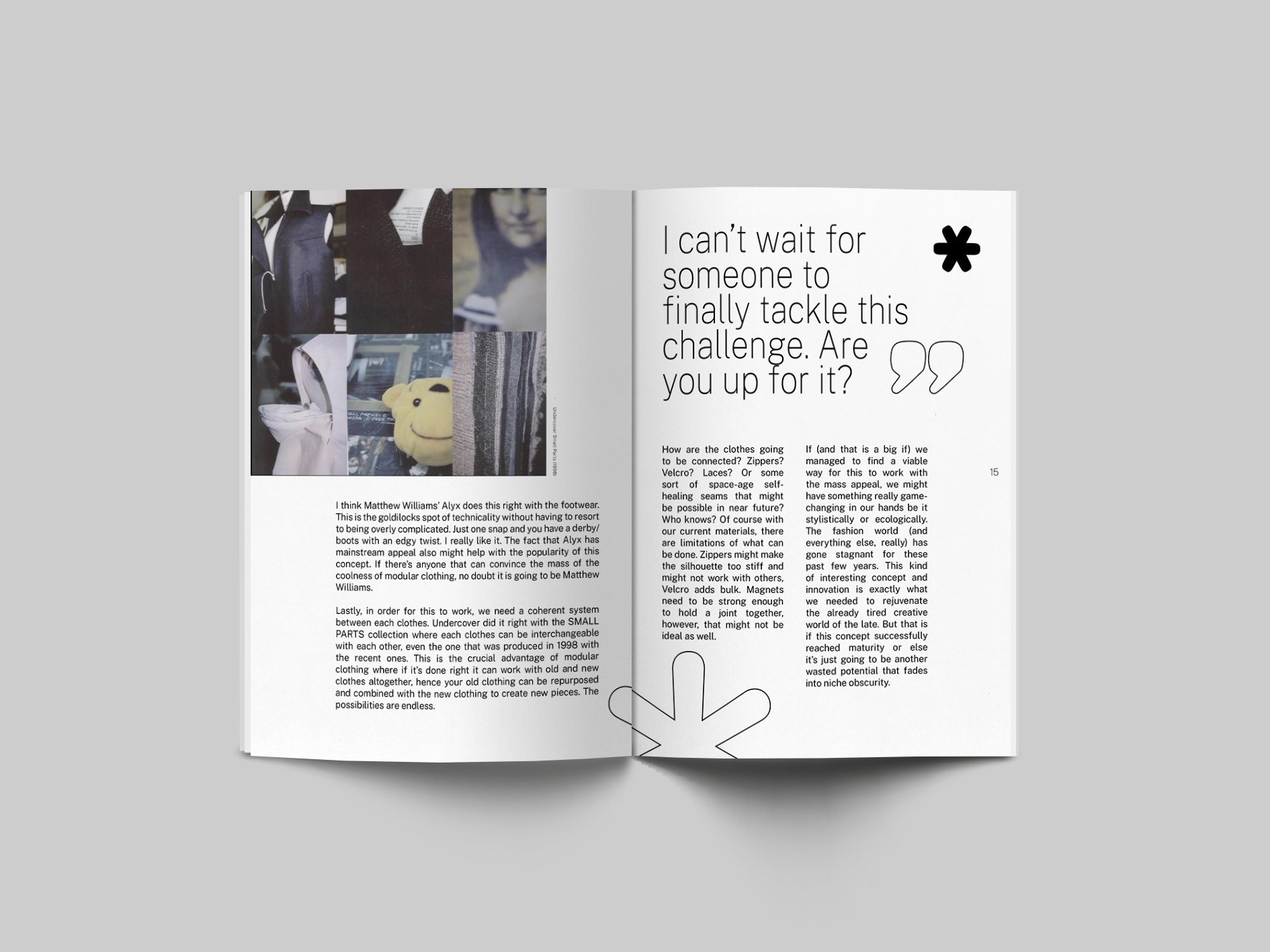 My first big editiorial project using experimental page layout. 30 page fashion magazine with a focus on turn of the century fashion technology.